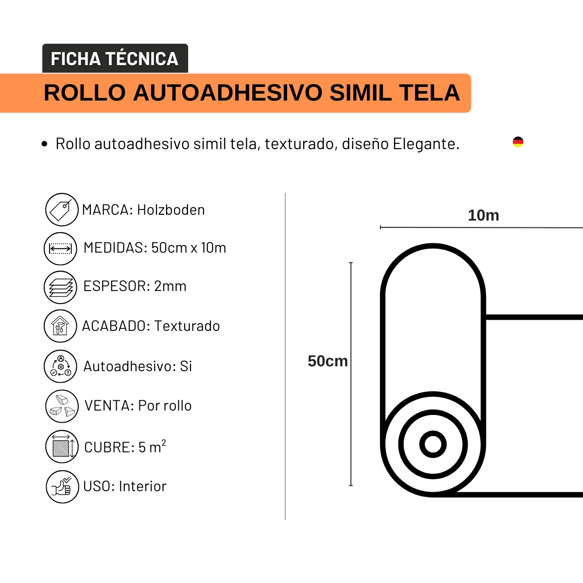 ROLLO AUTOADHESIVO GRIS SIMIL TELA 50CM X 10MT XPS.50CM.GREY *HOLZBODEN*
