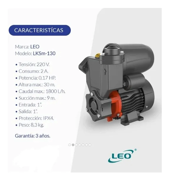 BOMBA PRESURIZADORA LEO LKSM130 ( CISTERNA/TANQUE ELEVADO ) Caudal Max 1800L/h Conex 1"x 1" 0,17hp